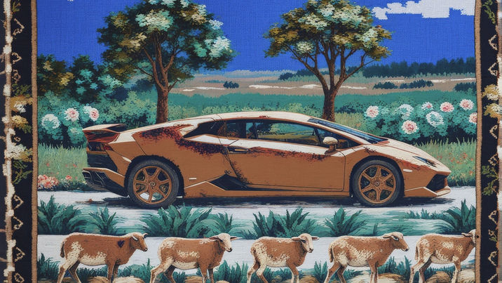 I’m Berkay Güngörmüş, an artist reimagining traditional wall carpets through modern visual language. My work blends pastoral and industrial motifs, machines, landscapes, and symbols of progress, drawn into nostalgic textures that question beauty, value, and change.